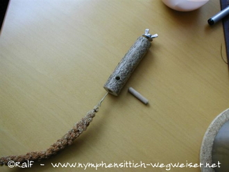 Auch dieser Halter kann durch die Stockschraube an den Käfig oder der Voliere angebracht werden.