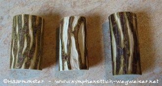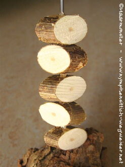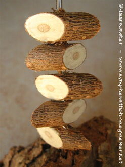 Auf die gleiche Weise kann man durch unterschiedlich dicke Äste viele andere Variationen herstellen: dicke, dünne, runde, ovale, kurze oder lange Stücke. Daraus ergeben sich mannigfaltige Möglichkeiten zur Beschäftigung und nicht zuletzt auch zur Ausbildung der Geschicklichkeit unserer geliebten Mitbewohner: