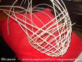 Anstatt Peddigrohr zu verwenden kann man auch Körbe aus den Ästen der Trauerweide oder echter Korbweide flechten. Sind sie noch frisch, werden die Nymphies sie besonders gerne mögen.