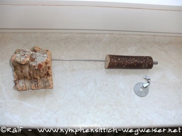 Nun wird das Loch für den Edelstahlstab in die Korkplatte gebohrt.