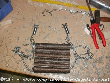 Zuletzt schraubt man die Edelstahlkette mit Edelstahlschrauben seitlich an die äußeren Äste.