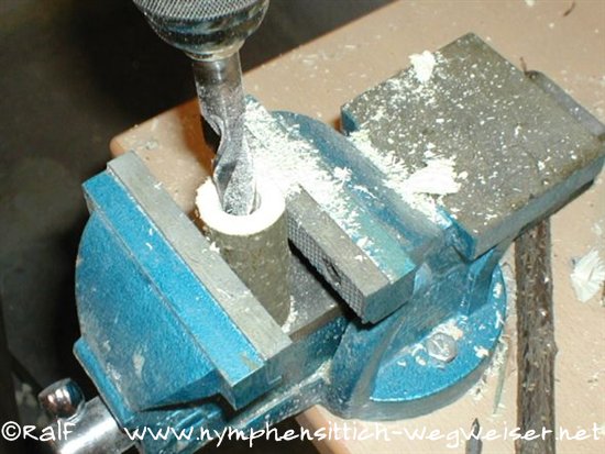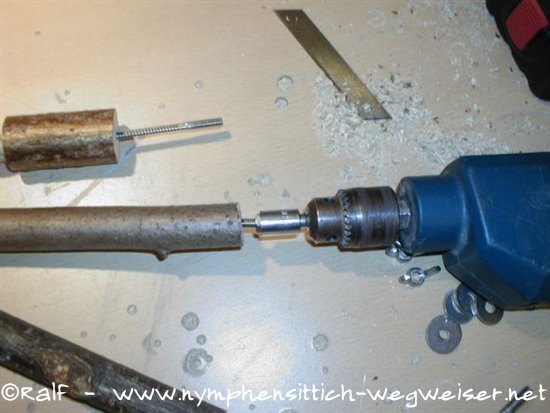 Schritt 1: Aufbohren eines Astes, so dass das Seil hinein passt.