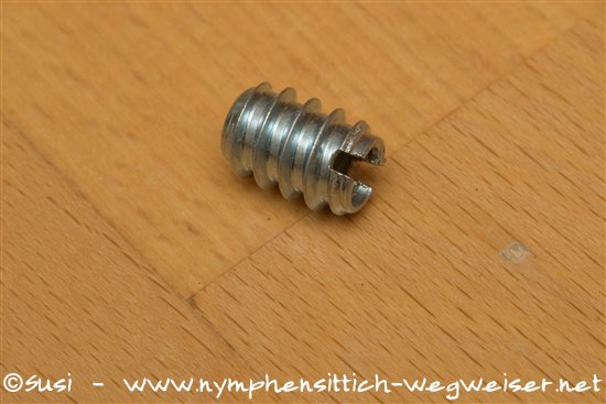 Für diese Muffe der Größe M6 wurde das Loch mit einem 9er Bohrer gebohrt und anschließend mit einem großen Schraubendreher eingedreht.