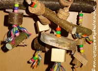 Vieles kann man für die Nymphensittiche selber basteln. Zum einen ist es häufig günstiger, zum anderen weiß man so genau, dass geeignete Materialien verwendet wurden. Leider ist das bei gekauftem Spielzeug nicht immer der Fall. Dazu macht es eine Menge Freude, vor allem, wenn man gemeinsam mit anderen Nymphienarren bastelt. Also, viel Spaß!
