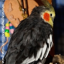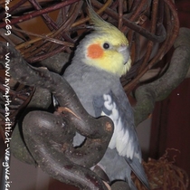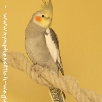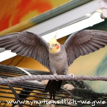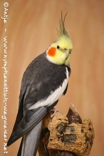 Junge Männchen ähneln den Weibchen und beginnen mit ca. 4-5 Monaten ihr Jugendkleid zu wechseln, d. h. sie färben um. Die anfangs noch grau überhauchte Maske weicht einem kräftigem Gelb. Alle anderen gelben Merkmale eines Jungvogels weichen grauen bzw. schiefergrauen Federn.