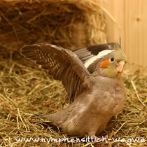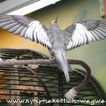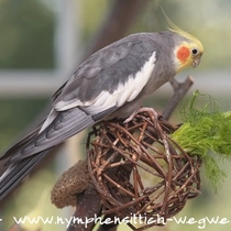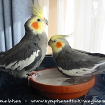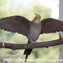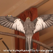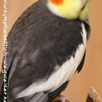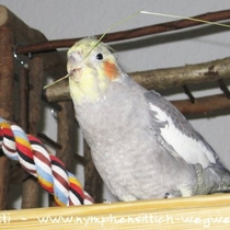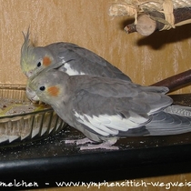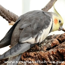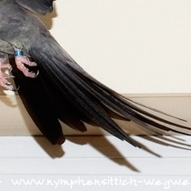 Die Grundfarbe des adulten Männchens ist grau mit einem Anflug von braun auf dem Rücken. Mittlerweile wurden verschiedene Farbnuancen herausgezüchtet. Besonders kontrastreich sind die dunklen, fast schieferschwarzen Nymphensittiche. Diesen dunklen Typ, wie auf dem obigen Bild, sieht man jedoch eher selten.