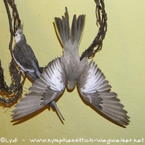 Zimter sehen den Falben sehr ähnlich. Die einfachste Unterscheidung gegenüber Falben kann man über Augen, Füße, Krallen und Schnäbel vornehmen. Beim Falben sind die Augen dunkelrot, ihre Krallen, Füße und Schnäbel sind rosa. Bei den zimtfarbenen dagegen sind die Augen schwarzbraun und die Krallen, Füße und Schnäbel hellgrau.