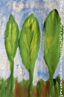 Hier wurde mit Marmormehlfarben auf Papier gemalt. Etwas dickeres Papier ist empfehlenswert.