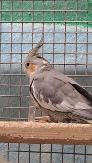 Bei Peppie kam ich erst mal in eine separate Voliere, damit ich in Ruhe ankommen konnte. Nach 2 Tagen wurde ich auch schon viel ruhiger, denn die ganzen anderen Nymphies um ich herum waren sehr entspannt. Dann wurden Türchen und Anflugklappe geöffnet, aber ich habe mich noch nicht rausgetraut; aber es kam Besuch zu mir. Und dann habe ich mir ein Herz gefasst und bin in die große Voliere umgezogen. Dort gibt es viele Sitzbrettchen und ich habe mich mal vorsichtig neben Thira gesetzt. Und auch auf dem Boden sitze ich gerne, denn da sitzt auch immer der ein oder andere.