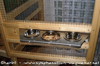 Auch beliebt ist eine Futterbar, sowohl beim Halter, als auch bei den Vögeln.