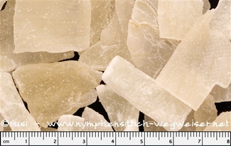 Die Stücke sind von der Größe eher für Papageinen geeignet. Nymphensittichen kann man sie aus der Hand anbieten und sie abbeißen lassen oder sie klein schneiden und in eine Schale legen.