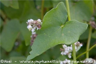Buchweizen ist als Futter für Nymphensittiche eher ungeignet, da sie ihr Futter entspelzen. Dennoch ist diese Saat in vielen Futtermischungen für Großssittiche enthalten, wird aber meist nicht gefressen.