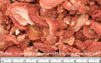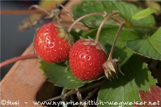 Erdbeeren können frisch oder getrocknet verfüttert werden. In getrocknetem Zustand kann man sie dem Körnerfutter beifügen, aber auch in separater Schale anbieten.
