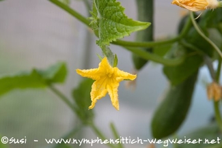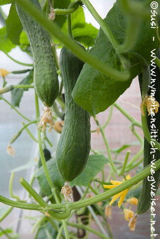 Gurken gehören zur Familie der Kürbisgewächse. Es sind einjährige Pflanzen, die kletternd am Boden wachsen. Sie können ca. ein bis vier Meter lang werden.