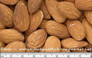 Da Mandeln einen realtiv hohen Fett- und Proteingehalt haben, sollten sie sparsam angeboten werden.