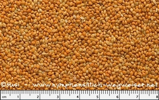 Mannahirse ist eine sehr kleine Hirseart mit rötlicher Farbe, und gehört zu den kohlenhydratreichen Saaten. Diese Hirsenart wird sowohl im gekeimten, wie auch im trockenen Zustand gerne von Nymphensittichen gefressen.