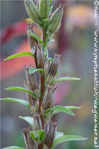 Eine besondere Vorliebe haben Nymphensittiche für die halbreifen Samen der Nachtkerze und diese halbreifen Samenstände werden gerne zum Ausfressen angeboten. Die Fruchtkapseln mit Samen können von August bis Oktober geerntet werden.