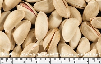 Für Nymphensittiche sind sie aufgrund des hohen Fett- und Proteingehalts eher ungeeignet. Im Körnerfutter sind sie nie anzutreffen. Giftig ist die Pistazie für die Vögel nicht, doch aufgrund des hohen Fettgehalts sollte man sie lieber nicht geben. Der hohe Proteinanteil kann zudem zu Brutigkeit führen.