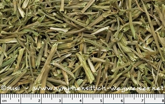 Getrocknete oder auch frische Selleriestängel können gut unter das Kochfutter gemischt oder als Leckerchen aus einem separaten Napf angeboten werden. Wenn die getrockneten Selleriestängel kleiner geschnitten sind, als hier abgebildet, können sie auch unter die gängige Futtermischung gemischt