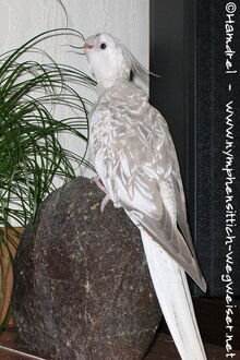 Es ist also schwierig das Geschlecht eines Lutinos zu bestimmen. Man muss schon sehr geübt sein, um das Fischgrätenmuster auf der Schwanzunterseite zu erkennen, doch mit etwas Glück kann man vielleicht beim Duschen gelbe Punkte unter den Flügeln erkennen. Wenn der Nymphensittich bereits aus der Jungmauser ist, handelt es sich um eine Henne, da diese die gelben Punkte auch nach der Jungmauser behält. Hähne haben zudem oft weißeres Gefieder als Hennen, je nachdem wie stark der Gelbanteil ist. Bei manchen Hähnen ist im Schwanz auch ein leichter Braunstich zu erkennen, den die Hennen nicht haben.