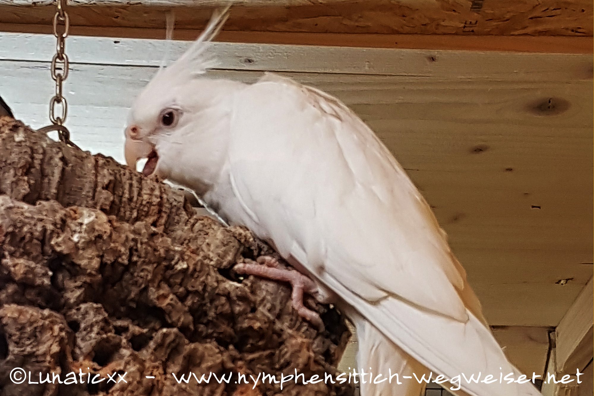 Merke! Bei Lutinos gilt der Umkehrschluss nicht. Hat der Vogel einfarbige Schwung- und Schwanzfedern ist es nicht zwingend ein Hahn! Hier ist das Verhalten zu beobachten.