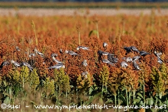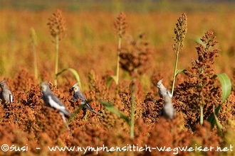 Als Nomaden ziehen sie im Land umher. Sie meiden Gebiete in denen kein Regen fällt und tauchen dort auf, wo sie gute Futter- und Brutbedingungen vorfinden. Mit dem einsetzenden Regen sprießt das Gras und keimen die Samen. Bis diese halbreif sind vergeht nicht viel Zeit. Halbreife Saaten bilden die Hauptnahrungsquelle, doch auch die Aufnahme von Akaziensamen und Mistelbeeren konnte im Freiland beobachtet werden. Auf den großflächig angelegten Hirse- und Getreidefeldern finden sie ein gutes Nahrungsangebot. Bei Farmern sind die Ernteschädlinge nicht willkommen.