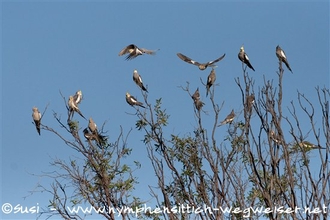 Nähern kann man sich ihnen nur sehr schwierig. Schnell fliegen sie auf und setzen sich auf nahe gelegene unbelaubte Bäume oder auf Stromleitungen. Dicht belaubte Bäume und Wälder meiden sie.