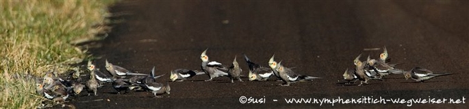 Trotz des häufigen Vorkommens ist es kein leichtes Unterfangen Nymphensittichschwärme in der Natur auszumachen. Und doch ist es der Traum vieler Halter einmal wilde Nymphensittiche in Australien zu sehen. Macht man sich auf den Weg sollte einem klar sein, dass die Fläche, auf der man sucht riesig ist und die Schwärme im Vergleich dazu recht klein sind.