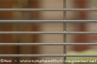 Gesunde Vögel sollen gesund bleiben, indem sie sich so viel wie möglich bewegen. Wir empfehlen Volierengrößen, die Nymphensittichen das Fliegen in der Voliere ermöglichen. Fliegen ist meist anstrengender als Klettern. Aber auch an einer Längsverdrahtung ist das Klettern recht anstrengend. Deshalb fliegen sie bei Vorhandensein von Längsverdrahtungen nach unseren Beobachtungen viel häufiger, was wünschenswert ist. Nicht selten haben Nymphensittiche Probleme mit Übergewicht und Verfettung. Nicht nur beim Menschen gilt: Wer rastet, der rostet.