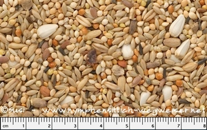 Diese Mischung wurde früher von Futtermittel Jehl angeboten. Nymphys Traum besteht aus 16 verschiedenen Saaten und Ebereschenbeeren, enthält aber keine Grassamen. Daher ist sie vergleichsweise günstig.