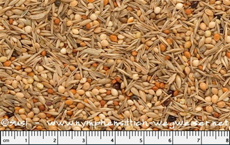 Dieses Diätfutter eignet sich gut zum Strecken gehaltvoller Großsittichmischungen. Außer in den nicht näher beschriebenen Unkrautsamen, die häufig auch Ölsaaten enthalten, sind keine Ölsaaten enthalten. Sie werden also nur einen sehr geringen Anteil ausmachen.