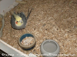 Hallo, mein Name ist Lindbergh und ich bin im April 2008 zu Peppie gekommen. Die Federlose wo ich vorher war, hat mich aus dem Tierheim geholt, aber dann stellte sich heraus, dass meine Federn am Flügel nicht mehr nachwachsen. Das war sehr gefährlich für mich, weil auch ein vierbeiniges, bellendes Wesen mit Fell im Haushalt lebte. Deshalb musste ich nochmal umziehen.