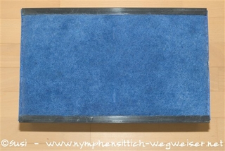 Sämtliche Teile aus Metall werden in einer Wanne mit Wasser und mildem Spülmittel gereinigt. Der abgebildete blaue Filter befindet sich auf der Rückseite.