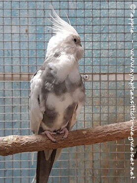Hallo, ich bin der Pacy und ca. 2 Jahre alt. Susanne hatte mich aus einer hiesigen Zoohandlung mitgenommen. Mir ging es nicht gut und mein Gefieder war gelblich verfärbt. Erst Zuhause bemerkte Susanne, dass auch etwas mit meinem Schnabel nicht stimmte und fuhr sofort mit mir zu einem vogelkundigen Tierarzt. Mein Schnabel war längs gespalten und es gab verschiedene Versuche, ihn mit einer Teilprothese aus Epoxidharz zu reparieren. Leider schlugen all diese Versuche fehl und so muss ich nun alle 3 Wochen zur Schnabelkorrektur.