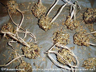 - Futtermischung mit Kräutern, Grassamen und getrockneten Blüten