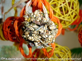 Nun können die Knabberzapfen an beliebigen Stellen aufgehängt werden und der Knabberspaß kann beginnen.