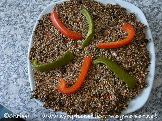 Nymphensittiche sollen sich an Leckereien nicht satt fressen! Die Größe einer Walnuss reicht pro Nymphensittichpaar am Tag und man sollte Kräcker nicht jeden Tag verfüttern. Sonst ist mit Übergewicht und Brutigkeit zu rechnen.