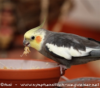 Gequollene Körner sind für Nymphensittiche leichter zu verdauen. Zudem kann man hier gut Vitamin- und Mineralpulver unter mischen. Dies ist besonders im Krankheitsfall von Vorteil.