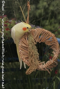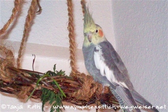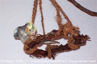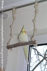 Schaukeln sind einfach ein Muß in jeder Voliere. Sie trainieren den Gleichgewichtssinn und bereiten einfach jedem Nymphensittich eine große Freude. Umwickelt man die einfachen Nymphensittichschaukeln mit Sisal- oder Hanfseil, ist der Spaß noch größer. Da wird geklettert und geschaukelt was das Zeug hält. Das ist besonders schön für Vogel und Halter.