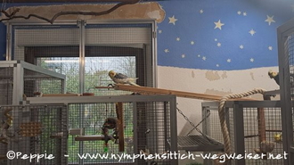 Am 30. März 2024 haben wir Schnuki in Eschweiler abgeholt. Der Kontakt kam über eine Freundin, die von der Papageienhilfe Aachen angesprochen wurde. Schnuki wurde vor über 10 Jahren in einem Blumenbeet gefunden; flugeingeschränkt, weil ihm einseitig die langen Schwungfedern fehlten (die auch nie nachgewachsen sind). Schnuki bekam damals einen Partnervogel, der jetzt aber verstorben war. Wegen Krankheit und Alter hat man sich gegen die Aufnahme eines neuen Vogels entschieden. Schauen wir mal, wie Schnuki sich einleben wird.