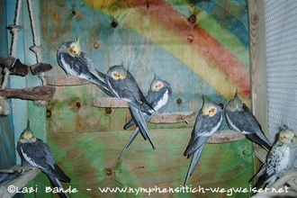 Hat man behinderte Nymphensittiche mit Fußproblemen, machen sich zusätzliche Sitzkissen gut.