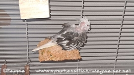 Nachdem sich Bijou erst mal dem Futternapf auf dem Boden gewidmet hat, kletterte sie hoch und setze sich neben Findus. Und Findus fing an zu singen und balzen und war ganz interessiert an der neuen Volieren-Mitbewohnerin. Mal sehen, wie die nächsten Tage verlaufen; aber mit Streitereien rechne ich nicht, nach der liebevollen Aufnahme seitens Findus.