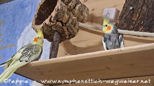 Ich habe Heidi vor Jahren mal zu Gary vermittelt, weil er mir so leid getan hat, wenn er bei mir in Urlaub war. Leider mussten die Halter die beiden wegen Umzug abgeben und so habe ich beide aufgenommen; zumal Gary inzwischen nicht mehr sehr gut fliegen kann.