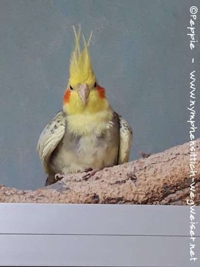 Beim ersten Freigang haben sie die Villa Sunrise verlassen und sind bis jetzt immer in der Sunday-City-Voliere. Noch üben wir ein bisschen das Reinsetzen, wobei Timmi ganz artig das Stöckchentaxi annimmt.