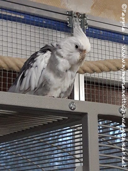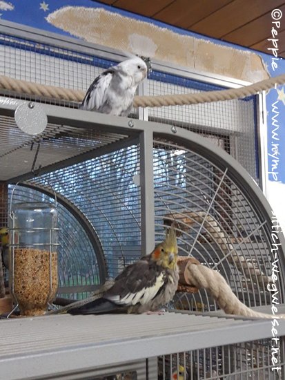 Auch wenn ich nicht sehe, dass die beiden viel schmusen, so sind sie doch unzertrennlich. Pacy muss ja alle 3 Wochen zur Korrektur seines gespaltenen und fehlgestellten Schnabels; aber das nimmt er inzwischen glücklicherweise ganz easy.