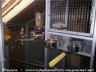 Hier gibt es nun ein paar Bilder von der Ausstattung zu sehen. Momentan ist die Voliere noch unterteilt, damit sich Maja und Neuzugang Taddl ungestört etwas näher kennen lernen können.