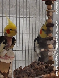 Momentan hängt Cuddles förmlich am Schnabel von Piku und singt ihn aus voller Inbrunst an. Und Piku lauscht dann andächtig. Übrigens trägt Piku noch immer keine Halskrause, was echt toll ist. Leider hat Cuddles angefangen, sich etwas an den Flügelkappen zu rupfen, so dass man kleine nackelige Stellen sehen kann; die aber zum Glück nicht blutig sind.