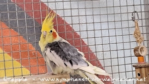 Zuerst habe ich einen Schreck bekommen, als er in der Volierenecke kauerte, aber er war putzmunter und tat nur so, als würde er brüten.