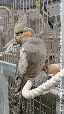 Und sie hat total Spaß am Schreddern und Spielen. Sie versucht sogar vom Volierendach aus Karabiner aufzuschrauben.