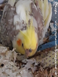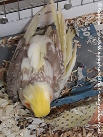 Ein paar Tage später saß Sunny auf dem Boden und bei mir schrillten alle Alarmglocken, weil sie wirklich übel aussah. Ich bereitete mich auf einen sofortigen Transport zur Tierklinik vor - aber dann legte Sunny plötzlich ihr neues Ei. Dem Ei folgte zwei Tage später wieder ein weiteres und seitdem verbringt Sunny den ganzen Tag auf ihren Eiern und behütet und bebrütet sie. Zum Glück verlässt sie am frühen Abend das Gelege und geht auf die oberen Äste.